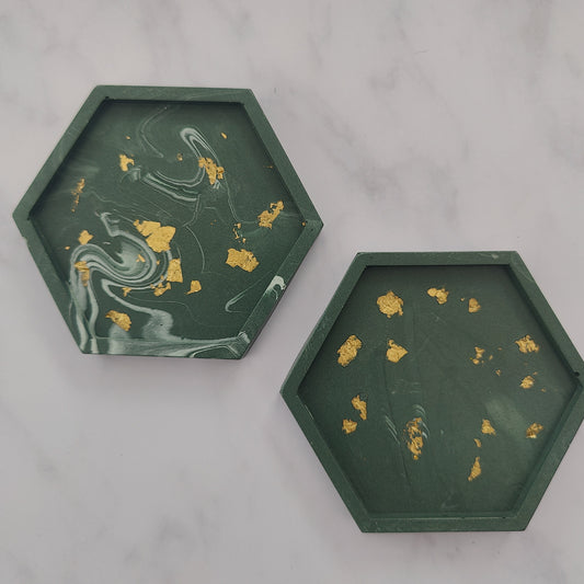 Forest Green Hexagon Coasters Set Of 2