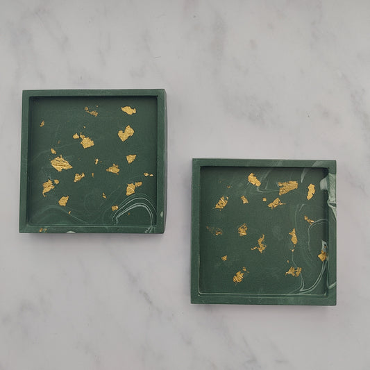 Forest Green Square Coaster Set Of 2