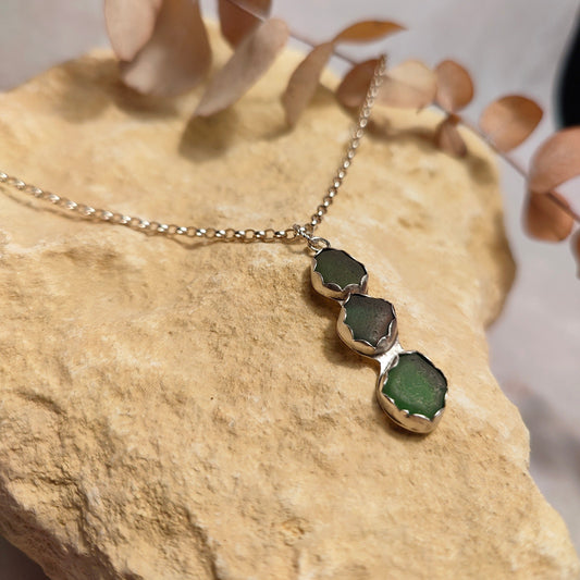 Triple Green Seaglass Pendant Necklace