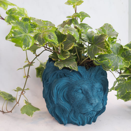 Teal Jesmonite Lion Head Plant Pot