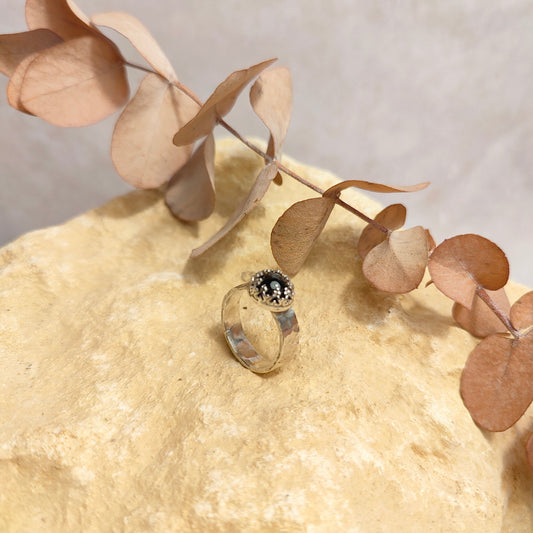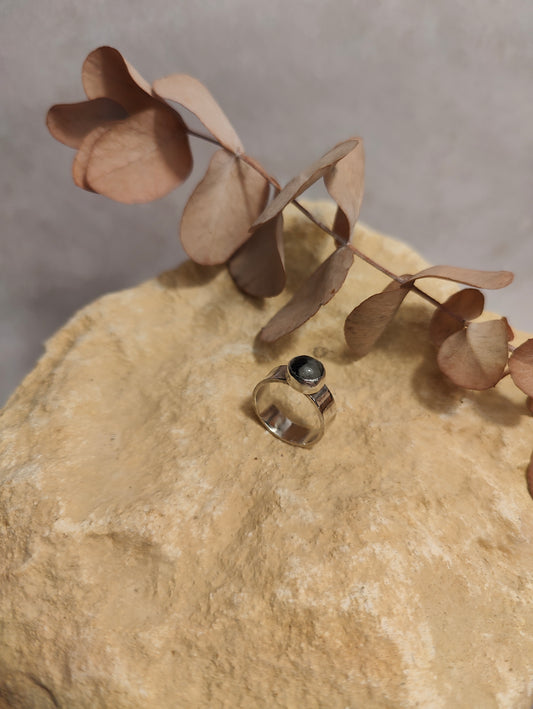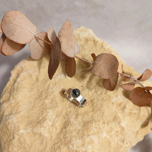 Black Tourmalinated Quartz Thick Ring UK Size K