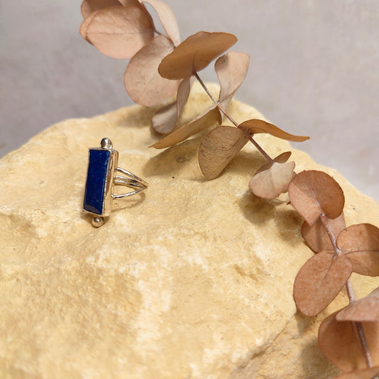 Double Band Lapis Lazuli Ring UK Size M